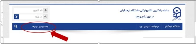 همچنین بعد از اینکه مدرسین دروس و مطالب خود را با موفقیت بارگذاری نمودند ، لازم است دانشجویان بعد از ورود به سامانه در قسمت بالا سمت چپ (قسمت جستجو) کلای درس مربوط به استاد خود را پیداکرده و در آن کلاس ثبت نام نمایند .