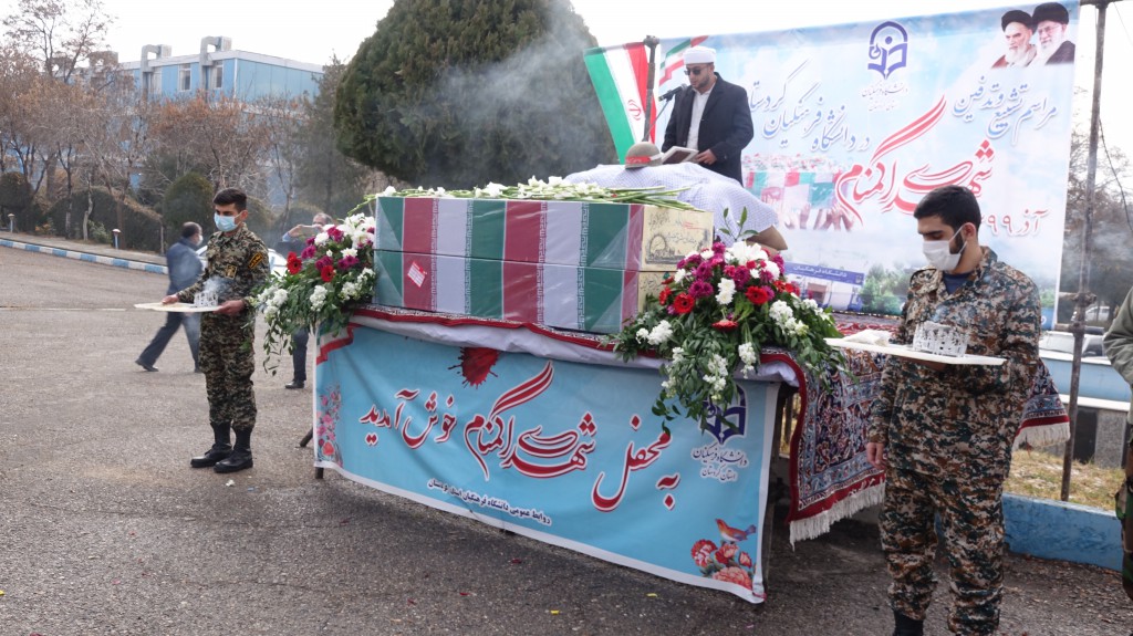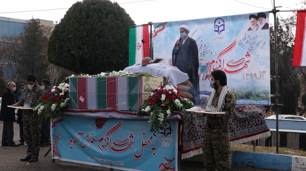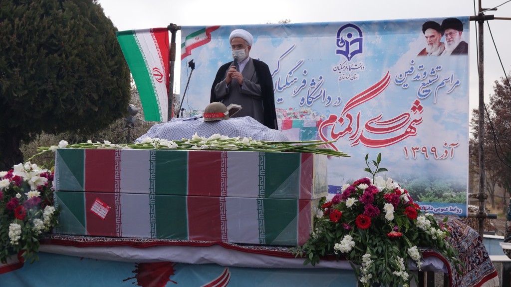 به گزارش روابط عمومی دانشگاه فرهنگیان استان کردستان؛ مراسم تشییع و تدفین پیکر مطهر دو شهید گمنام هشت سال دفاع مقدس در دانشگاه فرهنگیان کردستان، با حضور دکتر حسین خنیفر رییس دانشگاه فرهنگیان کشور(بصورت آنلاین) ، حجت الاسلام و المسلمین پورذهبی نماینده ولی فقیه در استان کردستان، ماموستا فایق رستمی نماینده مردم سنندج در مجلس خبرگان رهبری،حجت الاسلام و المسلمین تقوی معاون فرهنگی سیاسی نهاد نمایندگی مقام معظم رهبری در دانشگاه ها، دکتر یحیی معروفی مدیر امور پردیس های استان کردستان،مسئولین لشکری و کشوری، اساتید، همکاران و دانشجو معلمان، پنج شنبه 27 آذر 99 ساعت 10 صبح در محوطه دانشگاه فرهنگیان کردستان برگزار شد.