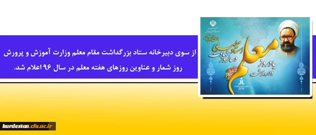 از سوی دبیرخانه ستاد بزرگداشت مقام معلماعلام شد. روز شمار و عناوین روزهای هفته معلم در سال 96 2