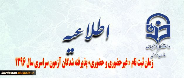 اطلاعیه زمان ثبت نام « غیرحضوری و حضوری» پذیرفته شدگان آزمون سراسری سال 1396 2