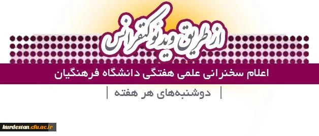 قابل توجه اعضای هیات علمی و پژوهشگران دانشگاه فرهنگیان کردستان؛ اعلام زمان برگزاری سخنرانی علمی هفتگی دانشگاه از طریق ویدئوکنفرانس 2