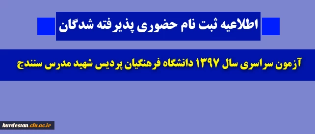 اطلاعیه ثبت نام حضوری پذیرفته شدگان آزمون سراسری سال 1397 دانشگاه فرهنگیان پردیس شهید مدرس سنندج 2