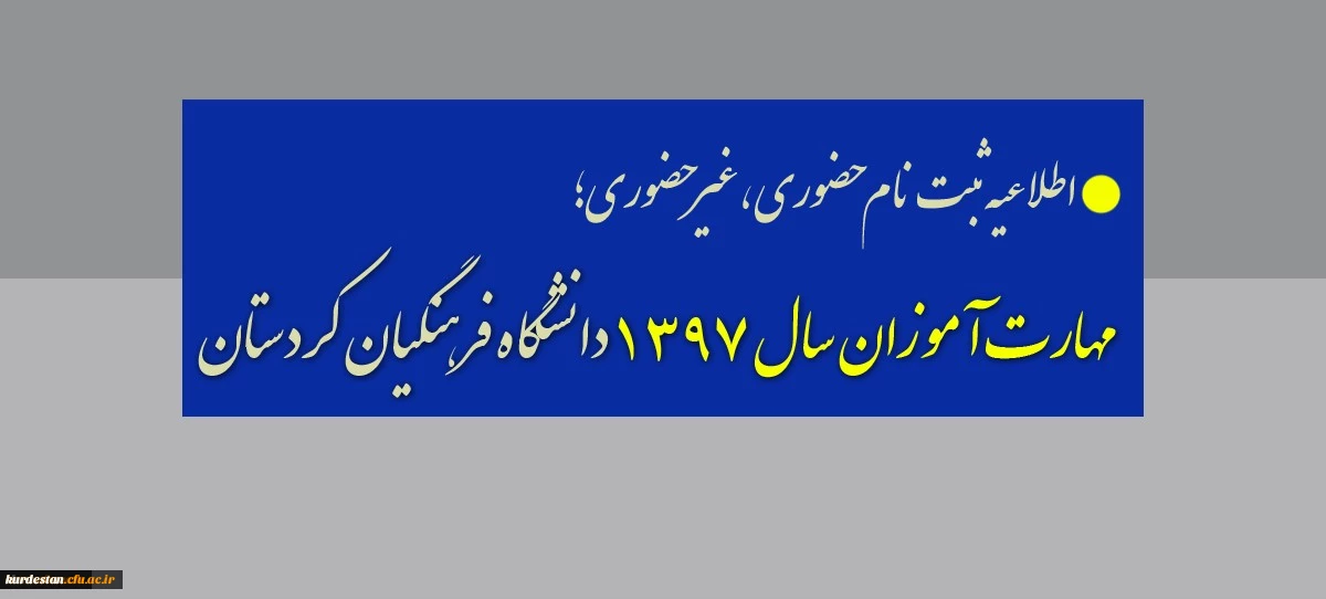اطلاعیه ثبت نام حضوری ،غیرحضوری؛ مهارت آموزان سال 1397 دانشگاه فرهنگیان کردستان 2