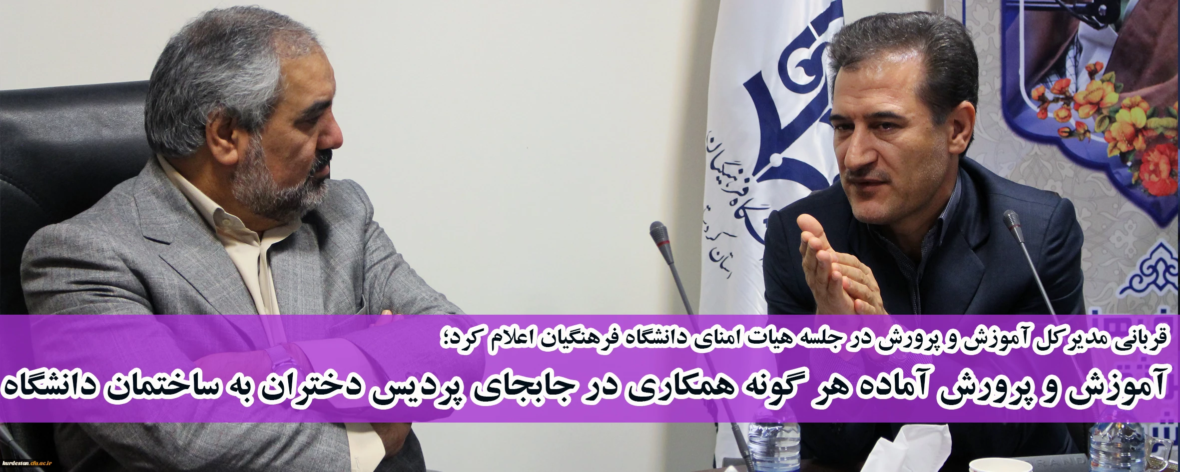 قربانی مدیرکل آموزش و پرورش در جلسه هیات امنای دانشگاه فرهنگیان اعلام کرد؛ آموزش و پرورش آماده هر گونه همکاری در جابجای پردیس دختران به ساختمان دانشگاه آزاد است. 2