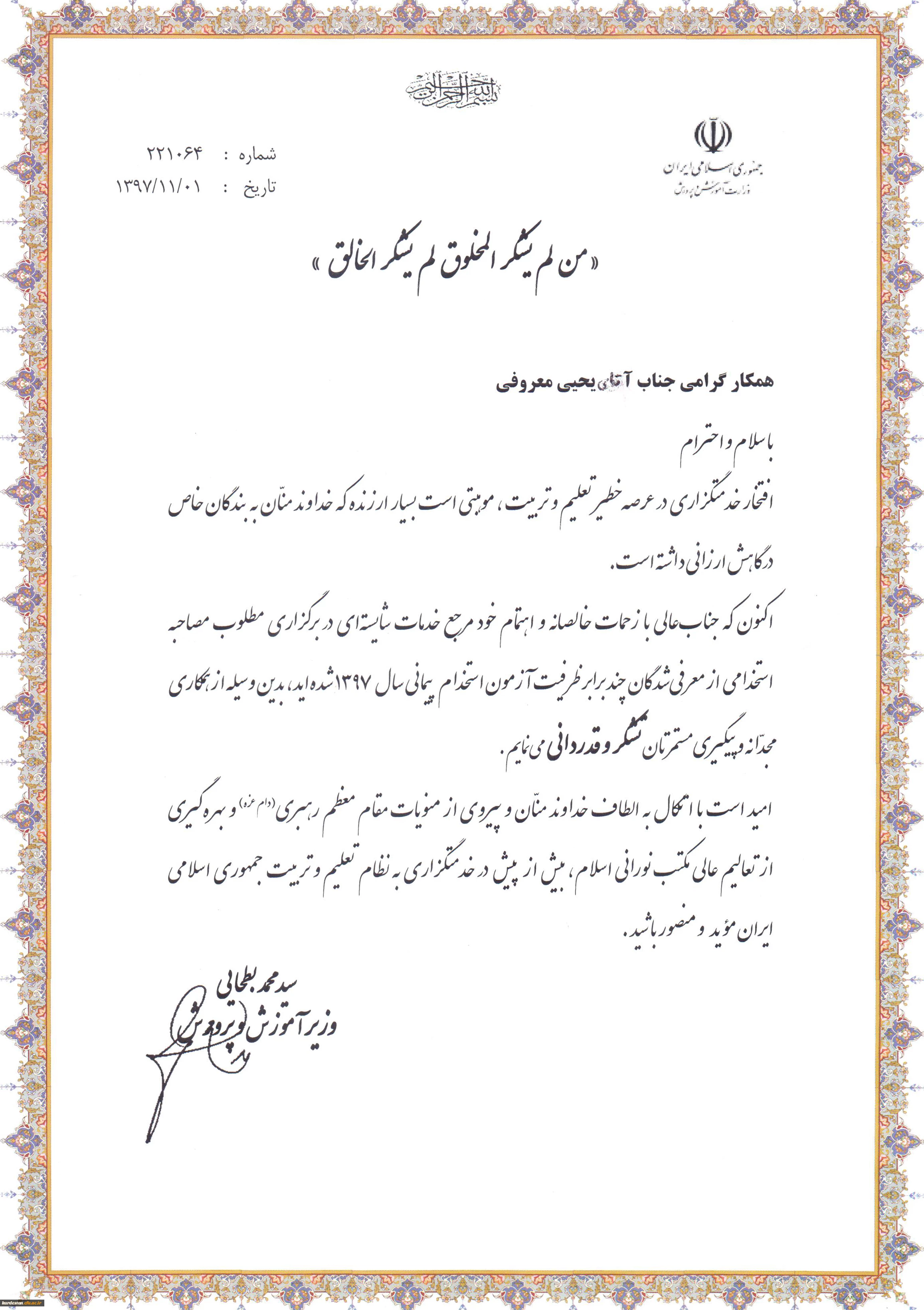 در بیست و یکمین اجلاس مدیران از دانشگاه فرهنگیان کردستان تقدیرشد؛