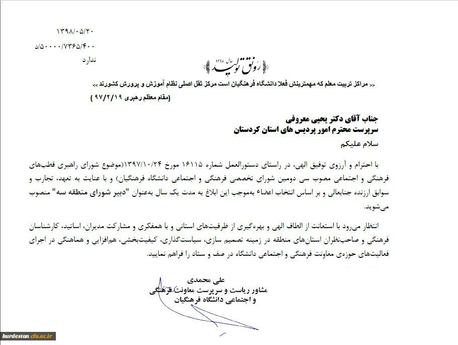 انتصاب دکتر معروفی به عنوان دبیر شورای منطقه سه 3