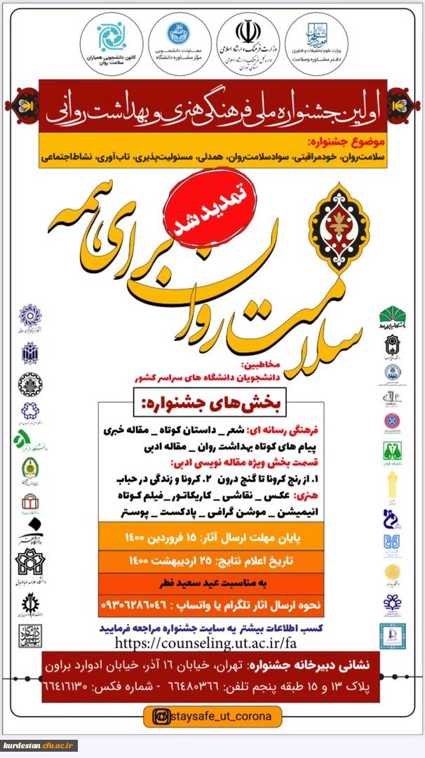 تمدید شد؛ جشنواره ملی فرهنگی، هنری و بهداشت و روانی دانشجویان دانشگاه های کشور 2