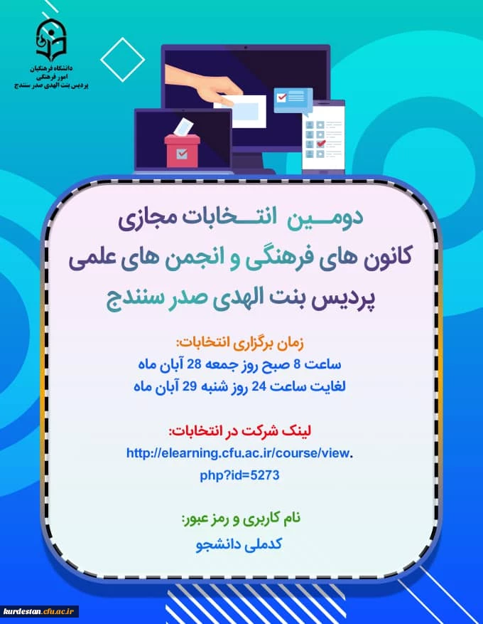 زمان برگزاری انتخابات کانون های فرهنگی و انجمن های علمی 2