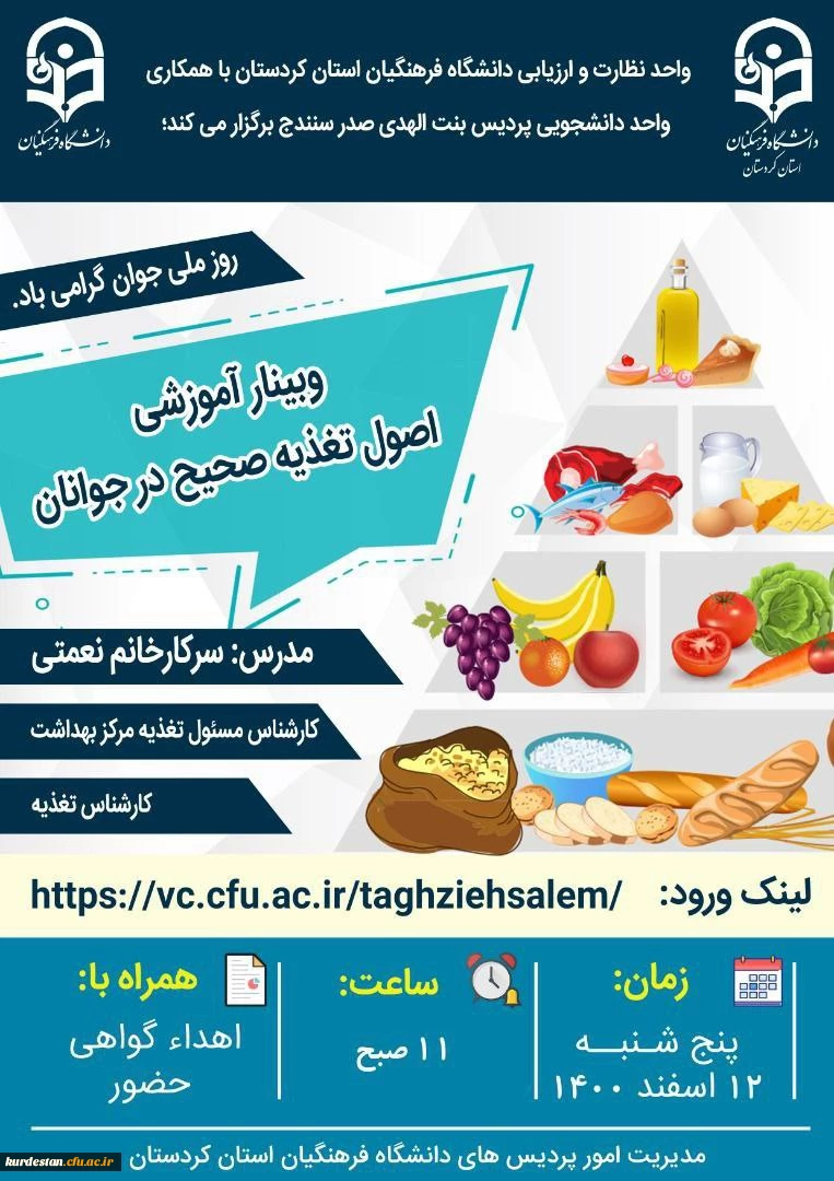 به مناسبت گرامیداشت روز ملی جوان برگزار می گردد؛ وبینارآموزشی "اصول تغذیه صحیح درجوانان" 2