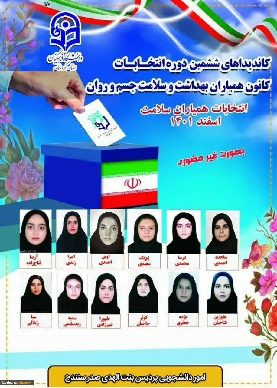 امتیاز دهید : ششمین دوره انتخابات کانون همیاران بهداشت و سلامت جسم و روان 3 شنبه 6 اسفند 1401 ساعت 14:40