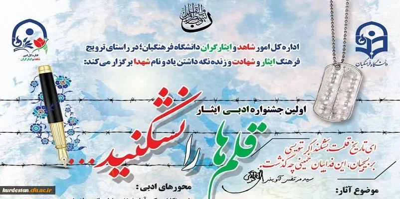 امتیاز دهید : اولین جشنواره ادبی ایثار اداره کل امور شاهد و ایثارگران دانشگاه فرهنگیان؛ 2 جمعه 30 تیر 1402 ساعت 12:15