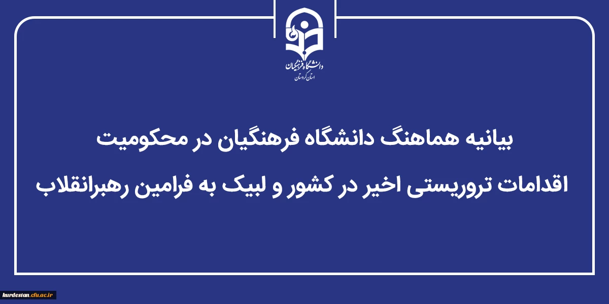 بیانیه هماهنگ دانشگاه فرهنگیان در محکومیت اقدامات تروریستی اخیر در کشور و لبیک به فرامین رهبرانقلاب 2