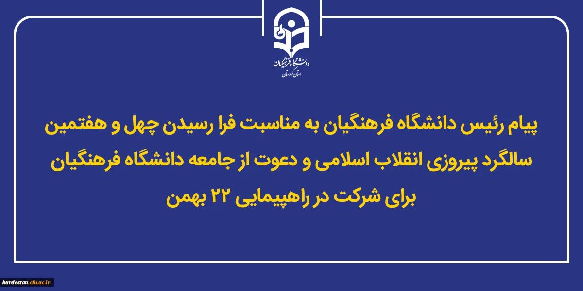 پیام رئیس دانشگاه فرهنگیان و دعوت از جامعه دانشگاه برای شرکت در راهپیمایی ۲۲ بهمن 2